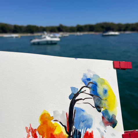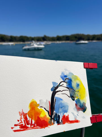 A travers quelques lignes rapides et un lavage de peinture aquarelle associée à de la craie, du feutre, je cherche à recréer la qualité intemporelle d'un paysage. Il y a quelque chose de très fort à être dans un paysage. La Provence est une région riche pour expérimenter. Je suis très attachée aussi à Saint-Tropez avec sa palette de couleurs ocres. Et depuis quelques années, j'ai tissé un lien fort avec l'île de Porquerolles, où je vis à présent, une grande partie de l'année, car c'est un lieu qui me voit toujours revenir parce que l'île a un pouvoir régénérant incroyable sur moi et elle est une source inépuisable d'inspiration.